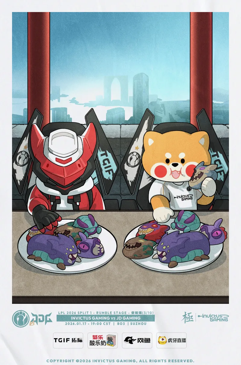 虎扑01月17日讯 JDG对战IG的比赛将于今日约19:00进行,赛前双方发布海报预热: